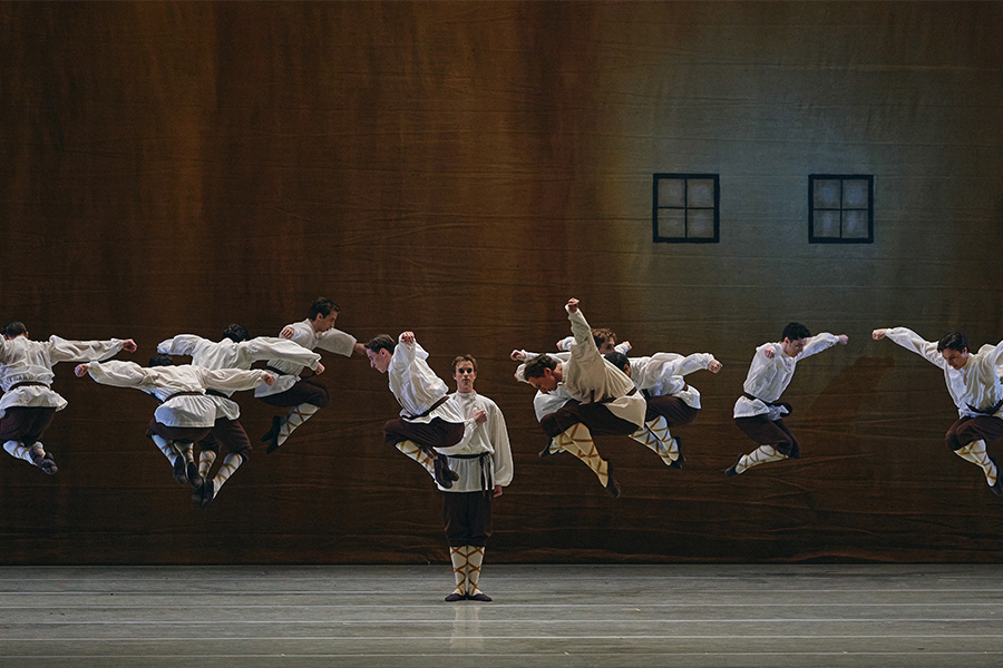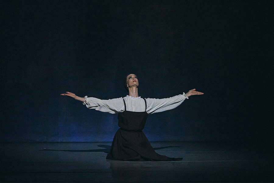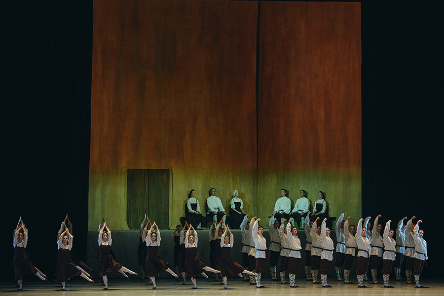 Responding to the nuances of the capricious rhythms and metrics of the music, in Les Noces the movement spoke and lived, needing no pantomime, stage props and realistic costumes. A dance of the ensemble. In the choreographer's mind, each dancer was to blend with the whole through the movement. The Bride and the Groom are mere parts of the combined ensemble, which conveyed the dramatic character of fate and the perpetuity of the protagonists in an old-style peasant wedding: just like in the maiden's braids, which before the wedding are unplaited into two parts and redressed in a woman's hairstyle, the maidens leaned their heads on each other's shoulders, bowing in ritual lamentation, leaned their heads as on an executioner's block. The extreme minimalism in subordination to the dance in the rather cool geometry of the choreographic drawing, in the insistent repetition of the monotonous movements, in the simplicity of the bicoloured brown and white costumes conceived by Natalia Goncharova and in the intentional impassivity of the performers – everything in the ballet was of its time in the context of the avant-garde of the 1920s. And in the sharp, contemporary nature of the ballet the primordial Russian nature of Les Noces was not lost – not cheaply popular and souvenir-like, but conditionally ritualistic, where the plot unfolds as if in a clockwork mechanism: the figures of the dancers intermingle monotonously, literally submitting to the will of one master, the ancient and immutable ritual. Olga Makarova