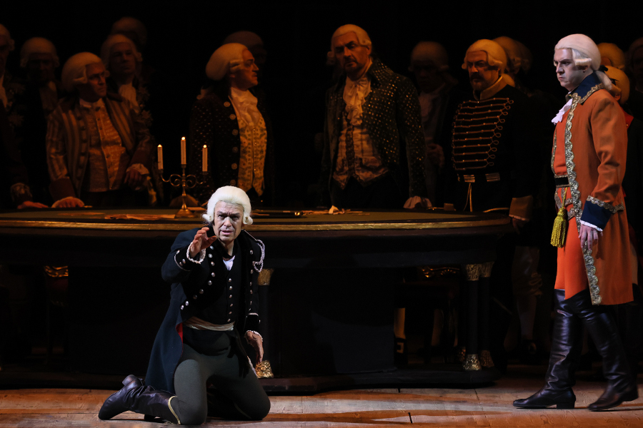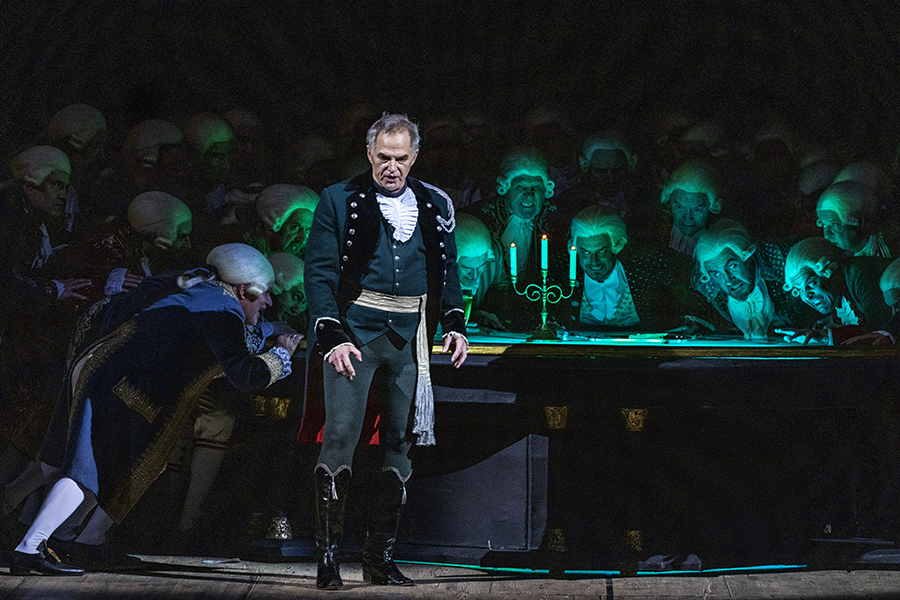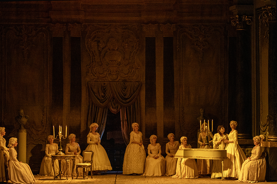 The Countess´ bedroom. It is night. Above the fireplace there is a portrait of the Countess in her youth dressed up as the Queen of Spades. Herman carefully enters the room. He vows to wrest the secret out of the old woman, even if Hell awaits him. Footsteps are heard, and Herman hides. Servants enter, and then the Countess, who starts getting ready for bed. Having sent the servants away, the Countess falls asleep in her chair. Suddenly, Herman appears before her (“Don´t be frightened! For God´s sake, don´t be frightened!”). On his knees, he begs her to name the three cards. The Countess, having risen from her chair, is silent. Then Herman points his pistol at her. The old woman falls. Herman sees that she is dead.