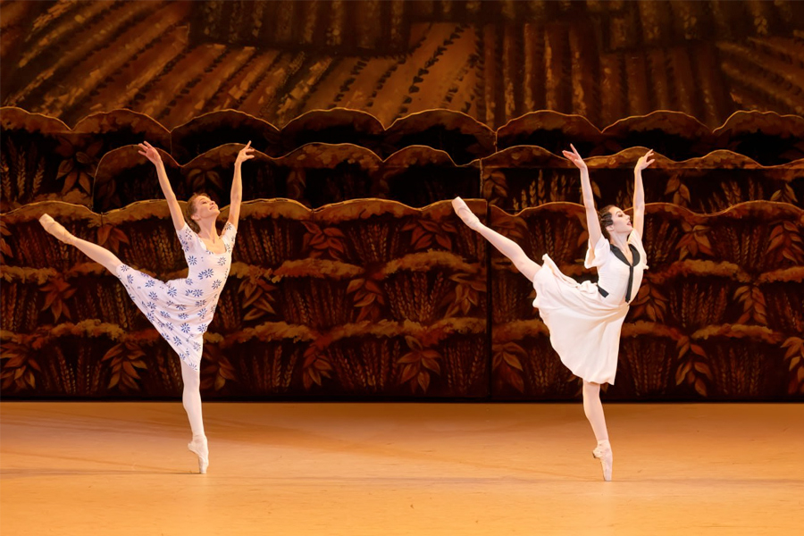 Оживленной толпой возвращаются встречающие вместе с приехавшими артистами. В артистической бригаде – гармонист, классическая танцовщица и ее партнер. Затейница Зина окликает танцовщицу. Та останавливается. Они остаются вдвоем. Какая неожиданная встреча! Ведь они давно и хорошо знают друг друга. Когда-то они вместе учились в балетной школе. С тех пор Зина вышла замуж за агронома, уехала с ним работать в колхоз. Никто и не знает теперь, что она была когда-то танцовщицей. Обе подруги с любопытством разглядывают друг друга.