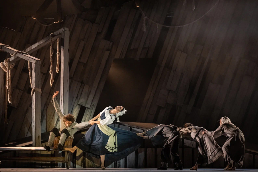 Танцевальное действие в «Поликушке» строится вокруг двух персонажей – дворового человека Поликея, жертвы нелепой случайности, и крестьянского парня Ильи, которому судьба приготовила более счастливую долю. Созданный хореографом пластический язык визуализирует переживания героев в хитросплетениях роковых перипетий, а атмосферу русской деревенской жизни помогает создать на сцене музыка – в спектакле звучат камерные сочинения Сергея Рахманинова и исполняемые Хором Московского Сретенского монастыря русские народные и казачьи песни.