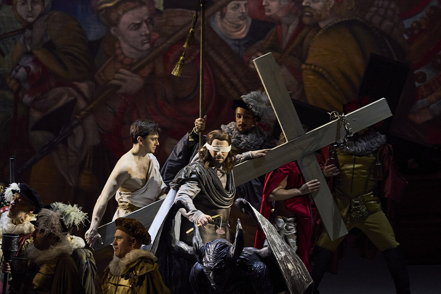 В особняке Нель – бал по случаю королевского бракосочетания. Танцы прерываются набатом, звук колоколов становится все громче. Вбегает Рауль. Он сообщает о чудовищном убийстве адмирала де Колиньи и призывает гугенотов к мщению.