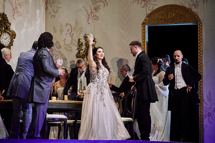 В Мариинском театре оперу о трагедии нездоровой женщины в нездоровом обществе поставили женщины: режиссер Клаудиа Шолти, художник-постановщик и художник по костюмам Изабелла Байвотер, художник по свету Дженнифер Шривер. Мир они уподобили огромной пестрой карусели; в этой карусели едут люди, летит отведенное им время, мелькают картины их жизни. Кто-то предпочитает «откататься», не приходя в сознание, но есть и те, кто способен остановить ее бег. Спектакль понравится как любителям традиционных «Травиат» (чего стоят одни наряды и прически!), так и тем, кто ждет особого мнения от режиссера: культура поведения в парижском салоне времен Второй империи напомнит о нынешних клубных нравах, а во многих штрихах постановки улавливается тонкая режиссерская ирония над жанром. Но главное, ради чего стоит идти на «Травиату», – это музыка Верди с ее головокружительным вальсовым ритмом, с ее прославленными ариями и дуэтами, с ее пронзительными лиризмом, теплом и состраданием. Христина Батюшина